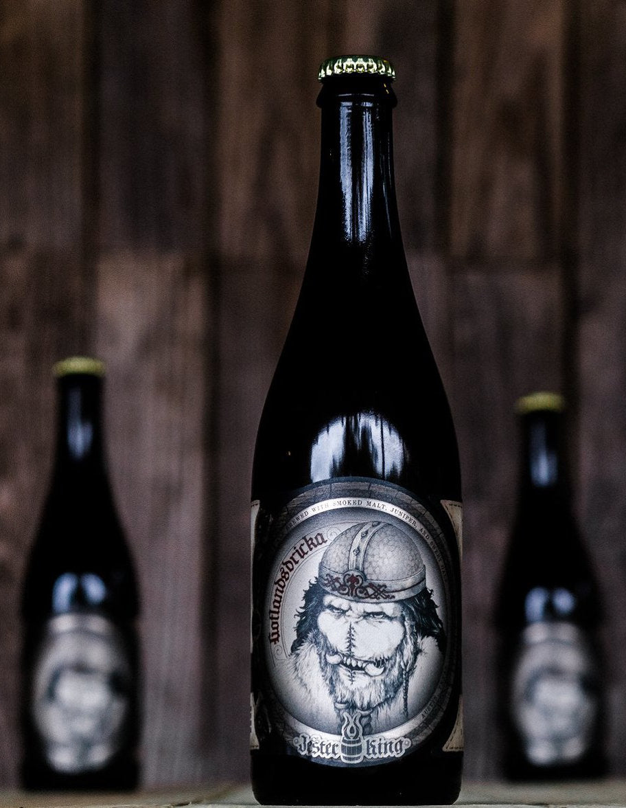 「ゴットランドの飲み物」を意味するゴットランズドリッカは、スカンジナビアの農家醸造の伝統にインスパイアされ、スモークモルトとジュニパー、ミリカゲールで醸造されたファームハウスエールです。ゴントランズドリッカはヴァイキングのビールという伝説があり、原始的な製麦技術がビールにスモーキーな特徴を与え、ホップ以外の植物(ジュニパーやゲールなど)が苦味付けに使われたのでしょう。ジェスターキング・ゴトランズドリッカは、ビール酵母と野生酵母の混合培養でステンレスで発酵させました。